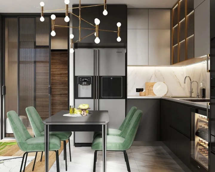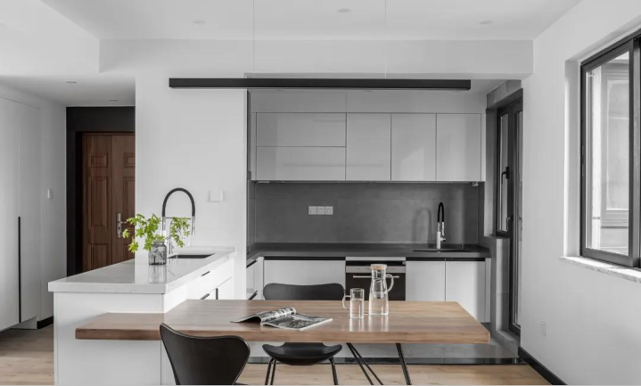 如果厨房空间小,家庭成员不多,完全可以把厨房做成开放式,与餐厅或客厅相连 —— 不仅能让整体空间显得更宽敞,日常拿取食材、端菜也更方便;还可以在相连空间加一个简易吧台:平时能当餐桌用,又能充当厨房与其他区域的隔断,自带小资情调,让生活更有仪式感。